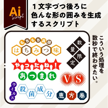 Illustrator jsx 1文字づつ文字の後ろに四角や丸など 色んな形の 囲みを生成するスクリプト - 0.5秒を積み上げろ BOOTH店 -BOOTH。