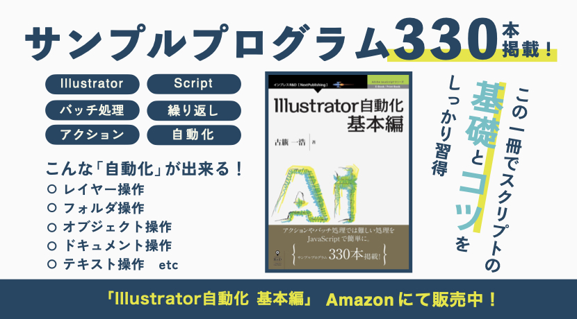 illustratorスクリプトで 日付を自動取得する サンプルコード。