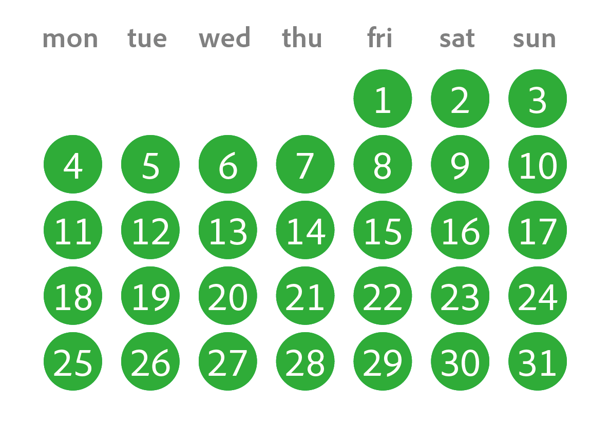 Illustrator で カレンダー の日付を作る方法Hato no takumi Riverside Life。