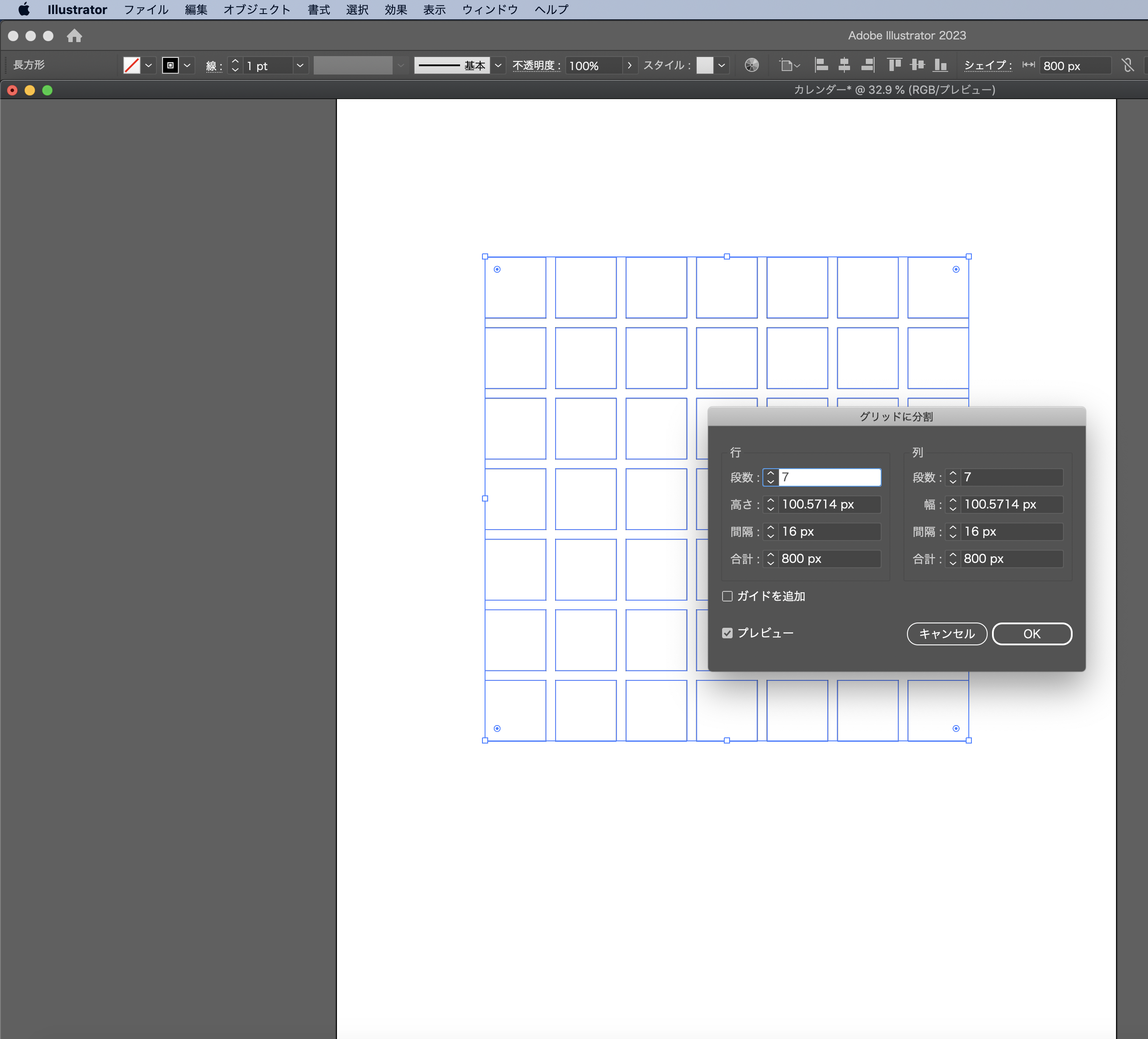 イラストレーターIllustratorカレンダーを作るにはグリッドの分割とスレッドテキストオプションがベストの組み合わせですたなかMAKOTOillustratorイラストレータ。