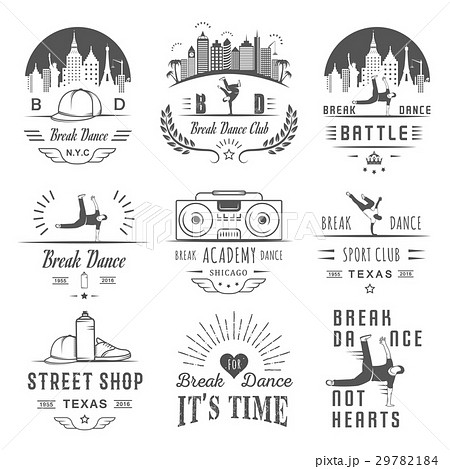 ヒップホップダンスのロゴ。ブレイクダンススクールまたはスタジオサイン。プレミアムと豪華なベクトルデザインのイラスト素材・ベクター Image177223700。