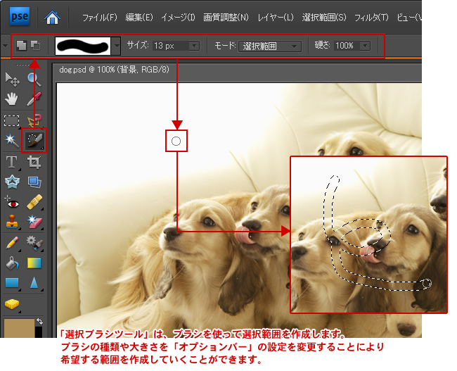 選択ブラシツールの使用方法Photoshop Elements 15。