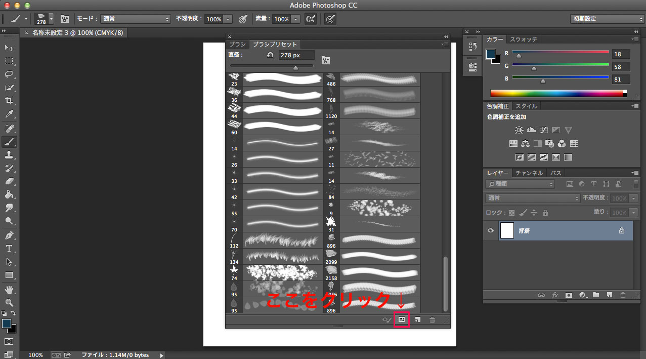 フォトショ ダウンロードしたブラシを読み込むささきや商店。