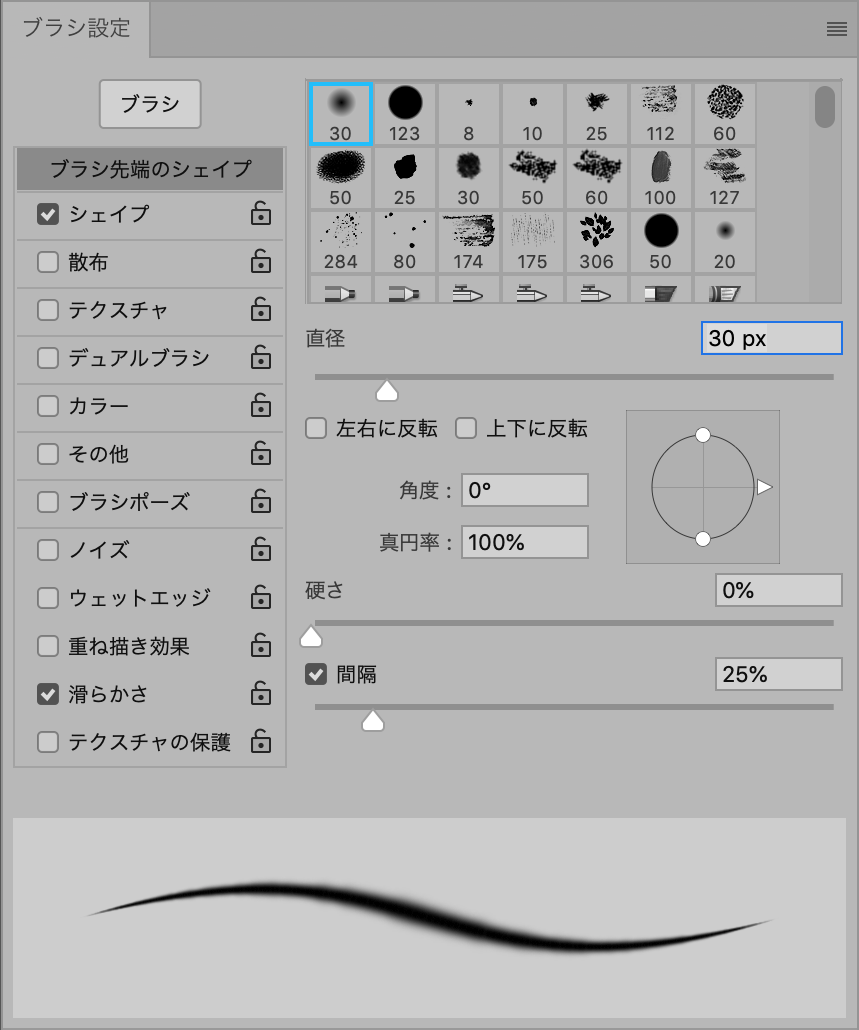 Photoshopブラシ設定のいろいろ ブラシ設定パネル2カワイウェブ。