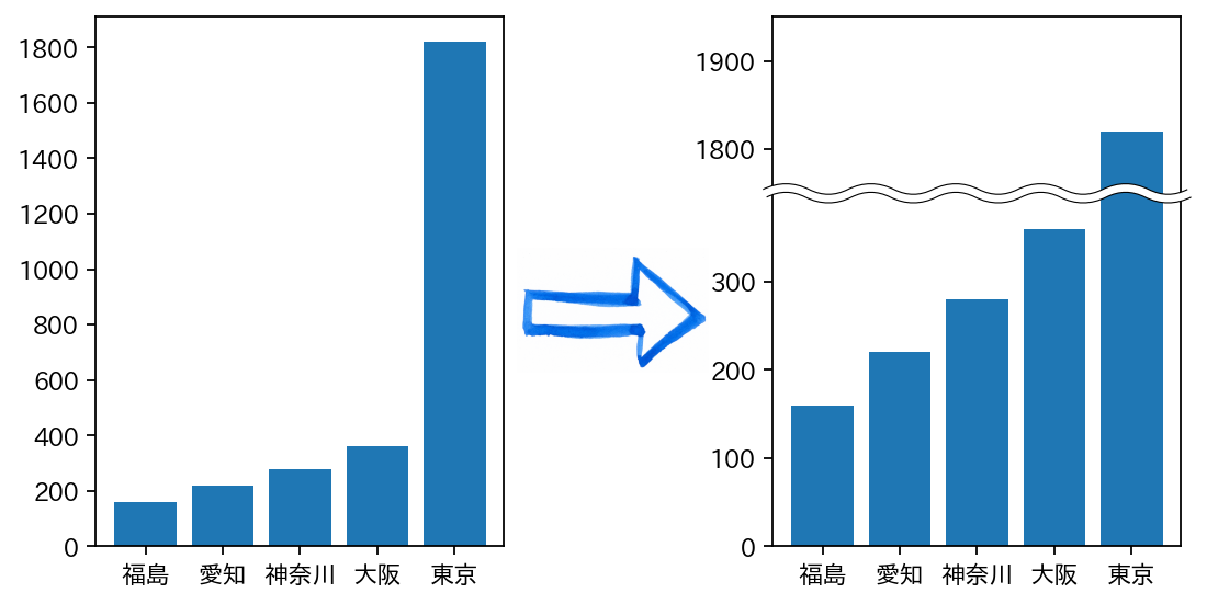 matplotlibで、途中を波線で省略したグラフを作成したい 印象操作したいPython - Qiita。