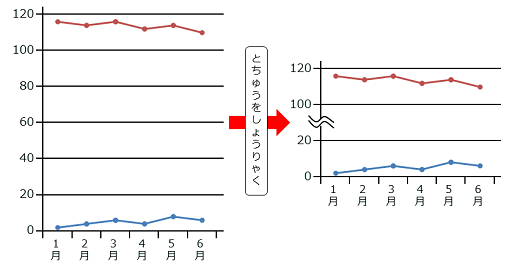 縦軸 たてじく の目盛の省略 しょうりゃくNHK for School。
