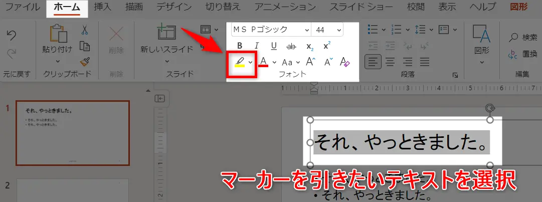 Powerpointで文字にマーカーをつける方法 - ちょっとしたこと。