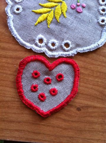 ボタンホールステッチの花 ボタンホールステッチは好きなステッチの1つで、上品な仕上がりと綺麗に並べていく作業が充実感を味わえます。周りは布を円にカットして、パレストリーナステッチで縫い付けました。 ステッチがあまりにも下手すぎて左半分は、とてもとても。