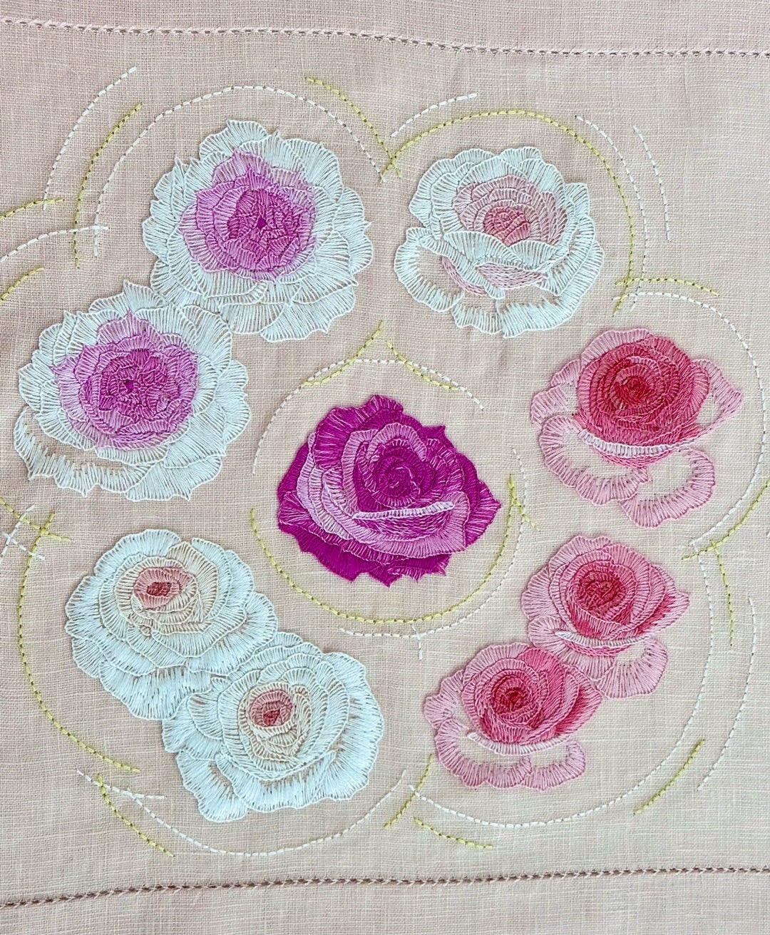 薔薇の花をボタンホールステッチで刺しました刺しゅう教室お針箱のブログ@横浜。