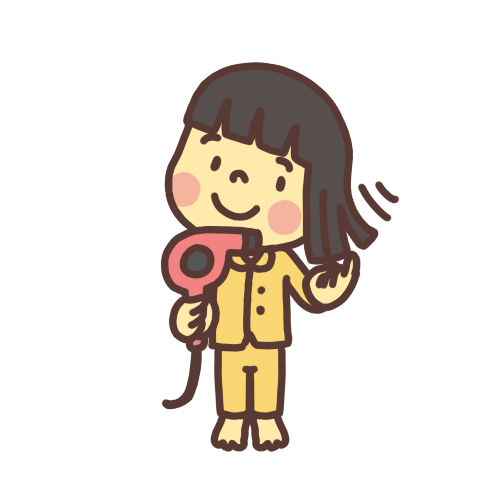お風呂上がりにドライヤーで髪の毛を乾かす子どものイラスト 2パターンかわいい子どものイラスト素材 無料イラストバンク 本店。