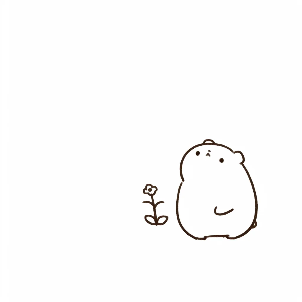 お花を見つめるくま かわいい韓国風アイコンイラスト・フリー素材なら「シンテリ」。