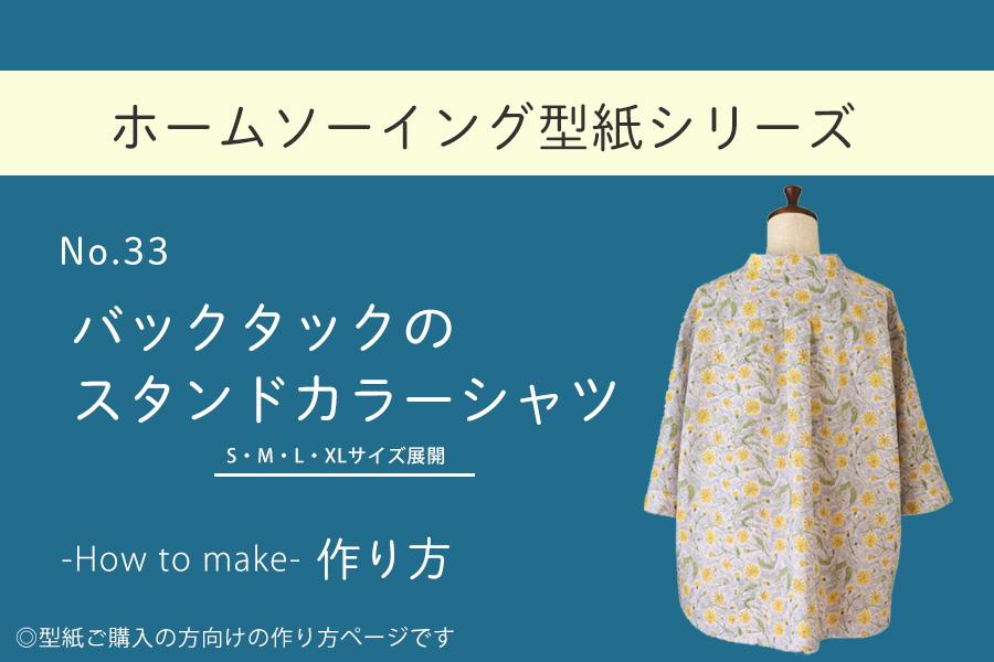 バックタックのスタンドカラーシャツの作り方 ホームソーイング型紙シリーズNo.033nunocoto fabric。