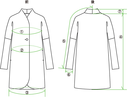 スタンドカラーコート 女性Lサイズ ダウンロード型紙- DRCOS。