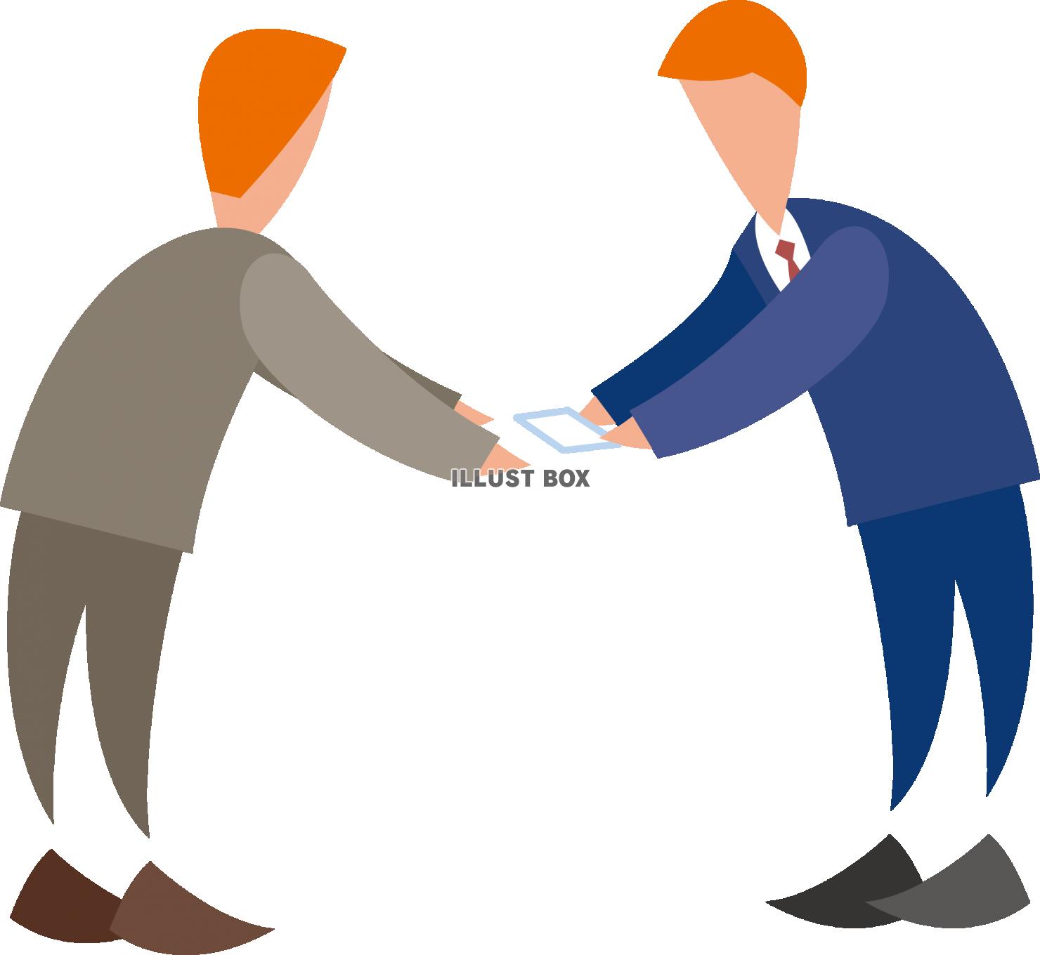 無料イラスト名刺交換する二人のビジネスマンパブリックドメインQ:著作権フリー画像素材集。