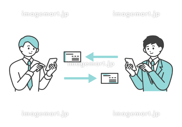 スマートフォンで名刺交換をする男性社員のイメージイラスト素材180711871 毎月1点無料 フリー のストックフォト イメージマート。