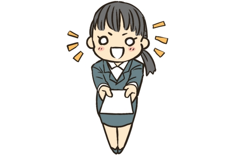 名刺交換をする女性のイラスト ソフト子供と動物のイラスト屋さん わたなべふみ。