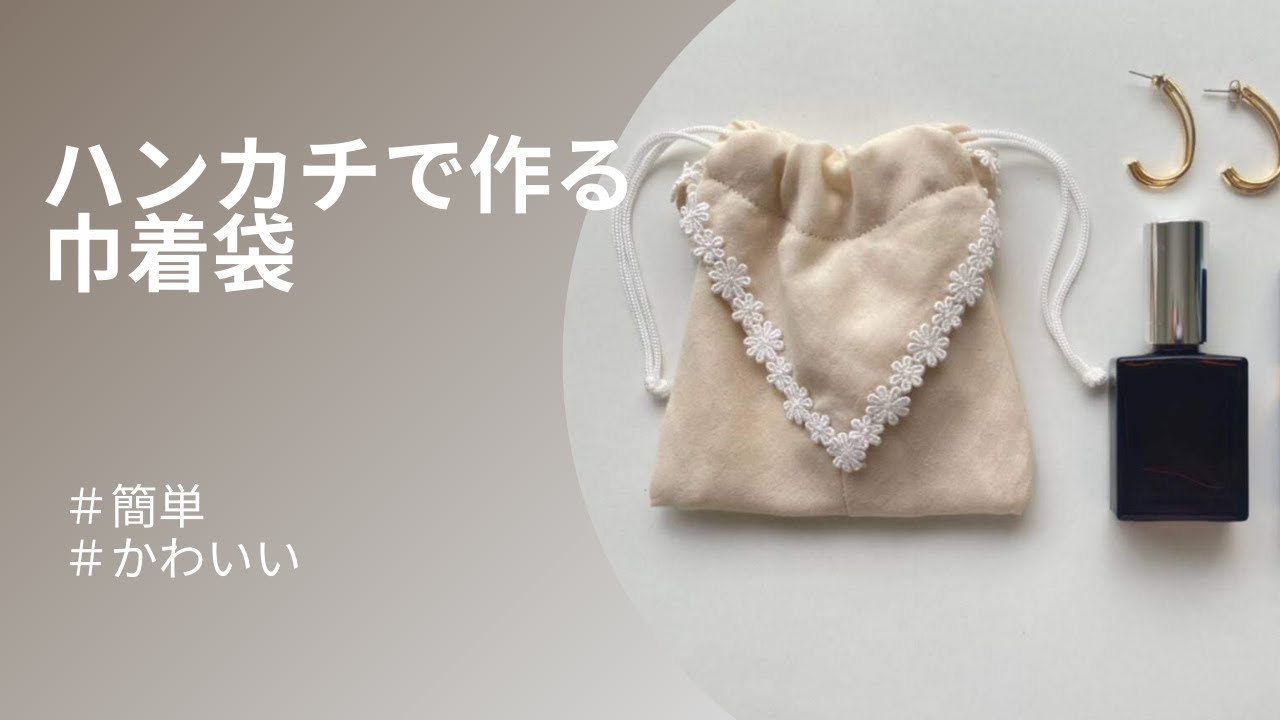 おりがみ巾着袋ハンカチリメイクぱたぱた折って縫うだけ。