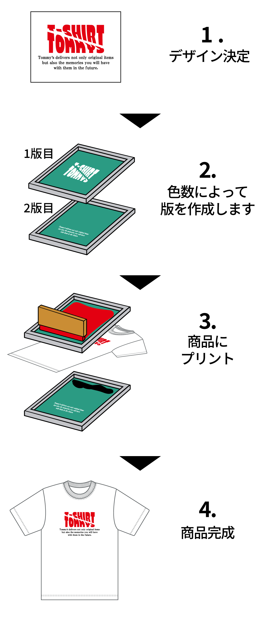 シルクスクリーンプリント方法についてご利用ガイドオリジナルTシャツ作成ならトミーズ。