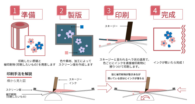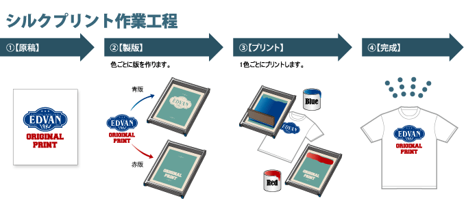 シルクプリント シルクスクリーン印刷 についての説明エドバン。