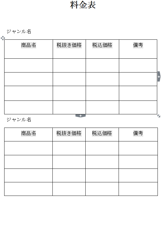 料金表 テンプレート一覧のひな形ランキング無料テンプレート Mac・Windows 『ひな形ジャーナル』。