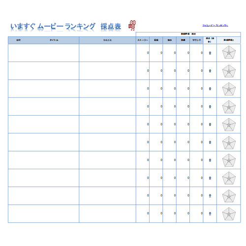 映画ランキング・採点表 - 無料テンプレート公開中 - 楽しもう Office。
