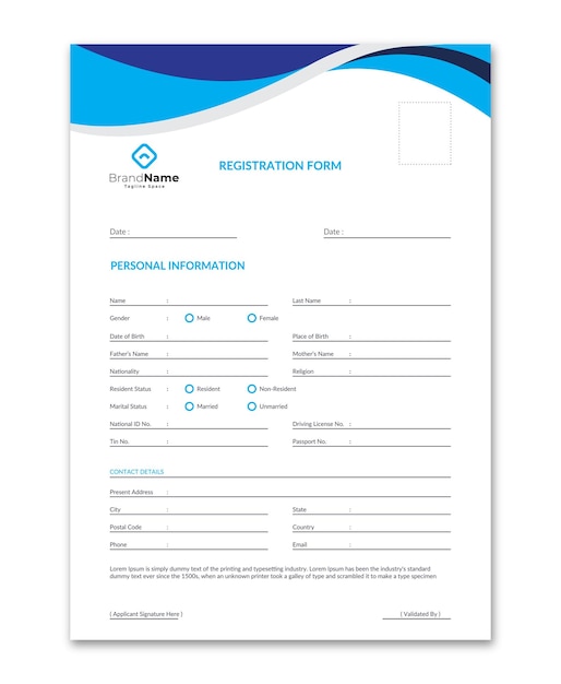 登録フォーム 入学フォーム テンプレートデザイン 学校フォーム 大学フォーム フォームデザインPremiumベクトル素材。