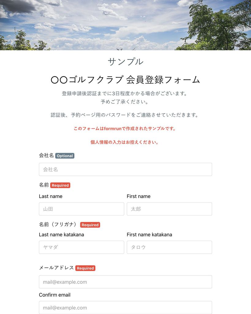 登録フォームテンプレート・サンプルで簡単作成formrun。