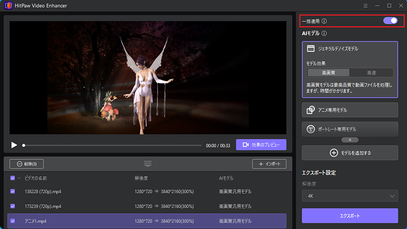 AI動画アップスケーラー:動画を4Kに変換AVCLabs。