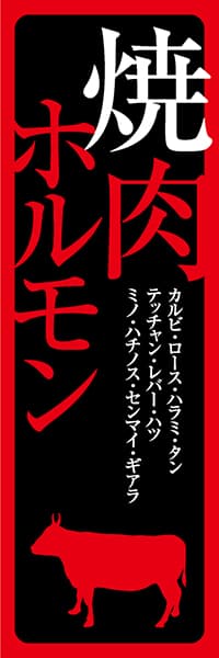 焼肉ホルモン 牛シルエット・黒地赤文字デザインのぼりショップ。
