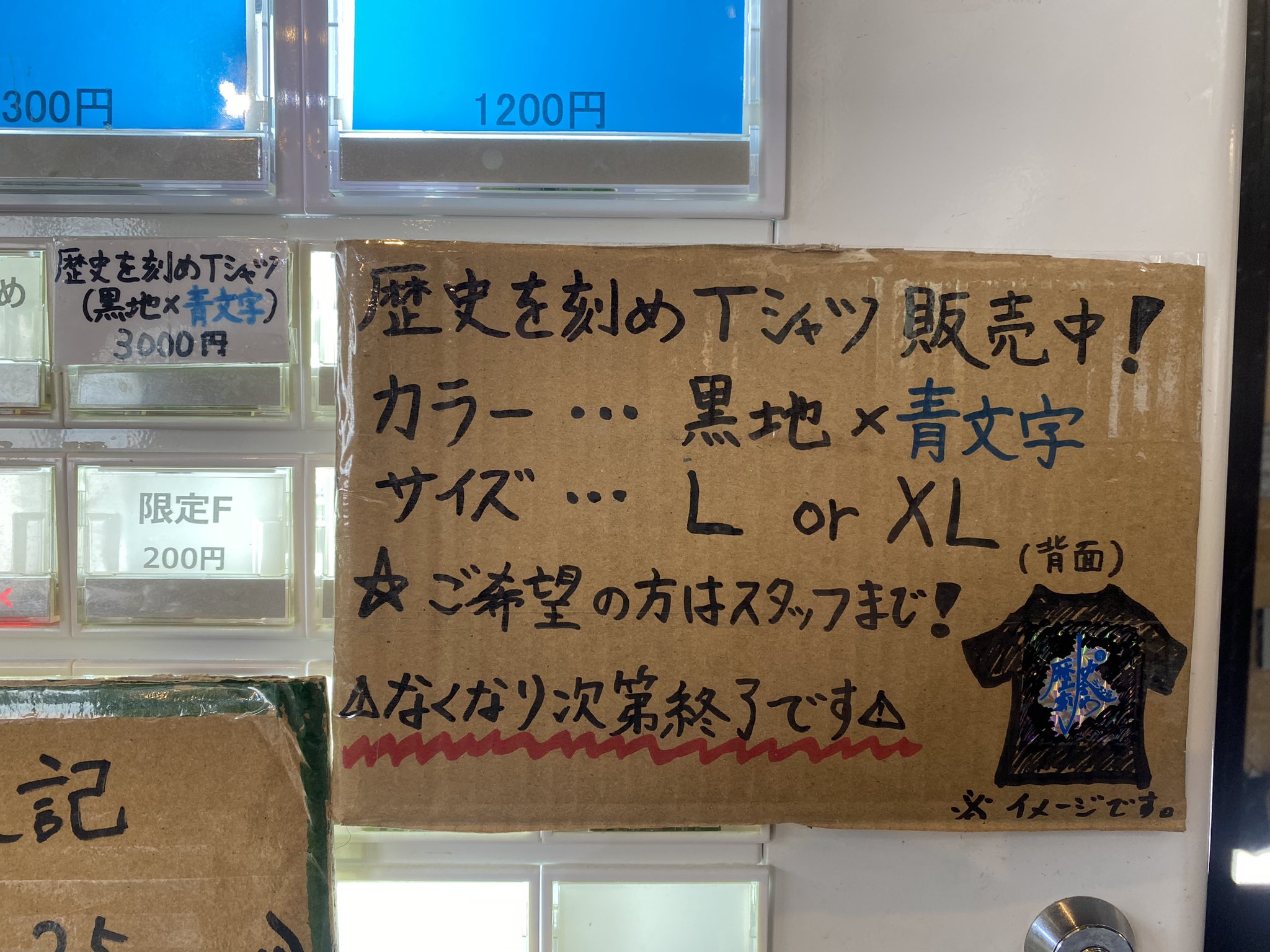 歴史を刻め 八事店 on X: "歴史を刻めTシャツ販売します!! 黒地×青文字の歴史カラー!! これを着たらあなたも歴史を刻めの一員に!本日5 1 木 昼営業から販売します!! Tシャツサイズ L・XL3000円 ※八事店ではタオルの販売はありません。 こちらなくなり次第。