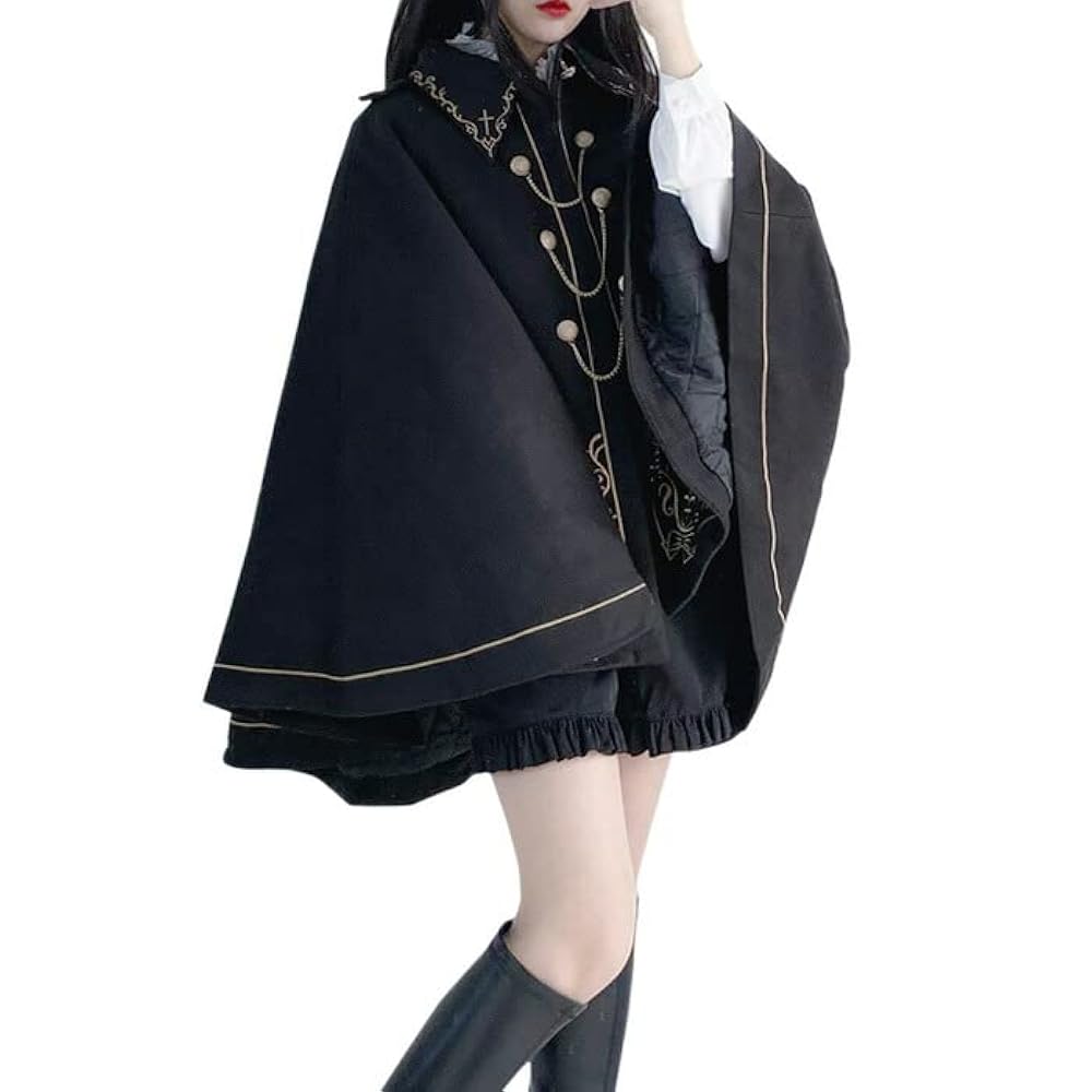AmazonRomelCheoダークナイト刺繍ケープコート マントコート ジャケット ケープ マント ポンチョ アウター Aライン 長袖羽織り レディース 黒 エレガント きれいめ ダークレトロ ゴスロリ レディース 個性的 原宿系 青文字系 カジュアル ファッション ロメルチェオ。