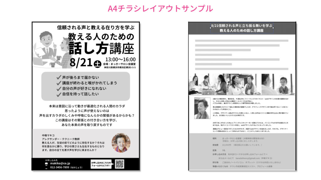 プロが教えるチラシ・フライヤーデザイン。レイアウトのコツはボックス収納!Pagesでデザイナーになる♪たった一人がときめくダサいチラシを作れ!中條マキコ。