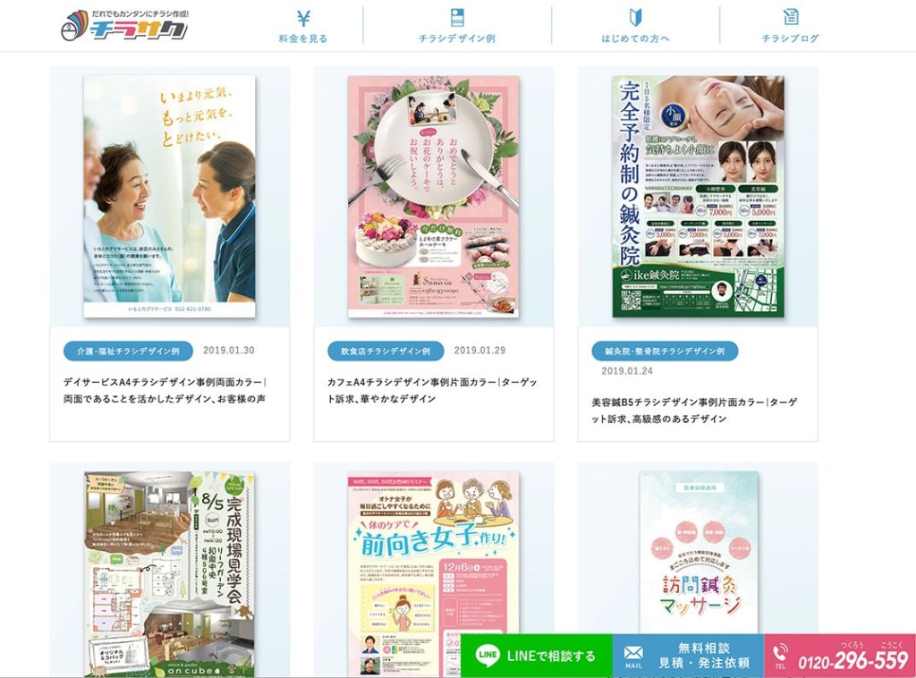 チラシデザインの参考になりそうなWebサイトチラシ作成専門 デザイン+印刷のCHIRASAKU チラサク。