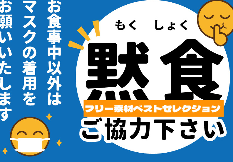 黙食!「食事中以外は着用」マスク会食の注意喚起ポスターに使えるフリー素材セレクト集フリー素材図鑑。