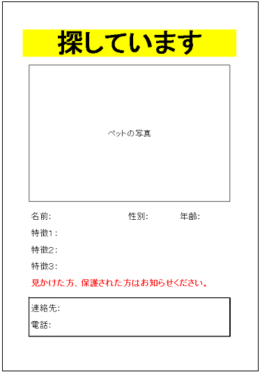 迷子ペット ポスター 無料配布印刷用ダウンロード - チラシ無料ダウンロード広場 チラシデザイン・テンプレート。