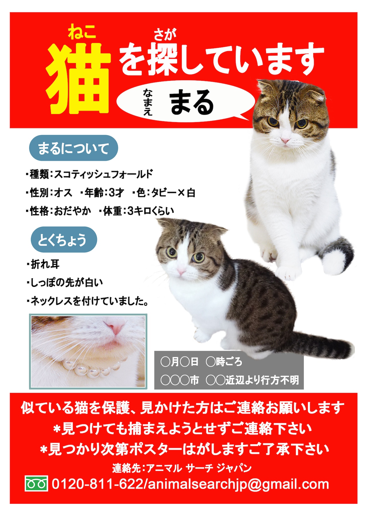 迷子ペットの捜索用チラシとポスター基本セットアニマルサーチジャパン。