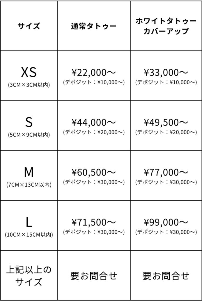 タトゥー施術料金のご案内 FLAT-TATTOO-ARTS。