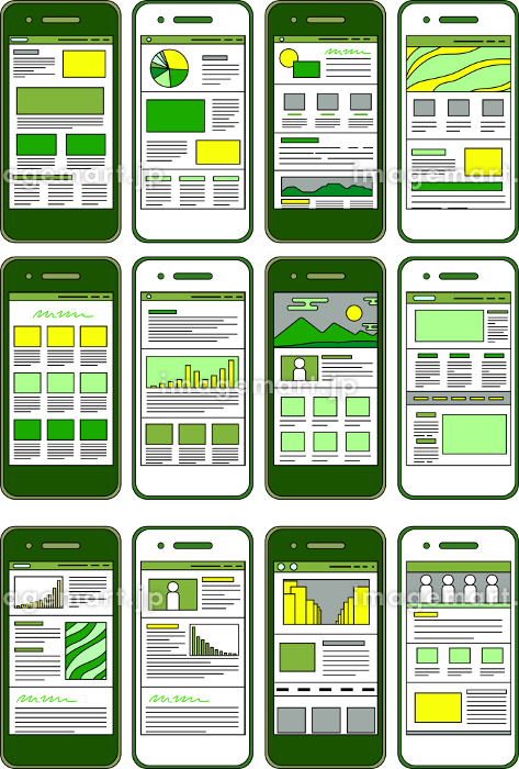 スマホで見るウェブサイト スマートフォン モックアップのイラスト素材167419612- イメージマート。