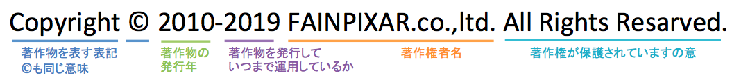 コピーライトってどうやって書けばいいの? コピーライトの書き方株式会社ファインピクサー FAINPIXAR 株式会社ファインピクサー FAINPIXAR。
