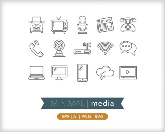 メディアアイコンセット:ニュース、ソーシャルメディア、Webデザイン SVG、AI、PNG- デジタルダウンロード - Etsy 日本。