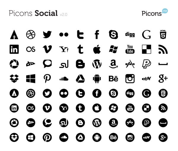 汎用性に優れた、ソーシャルメディアの全60種類のアイコン素材 AI, PSD付き-Picons Socialコリス。