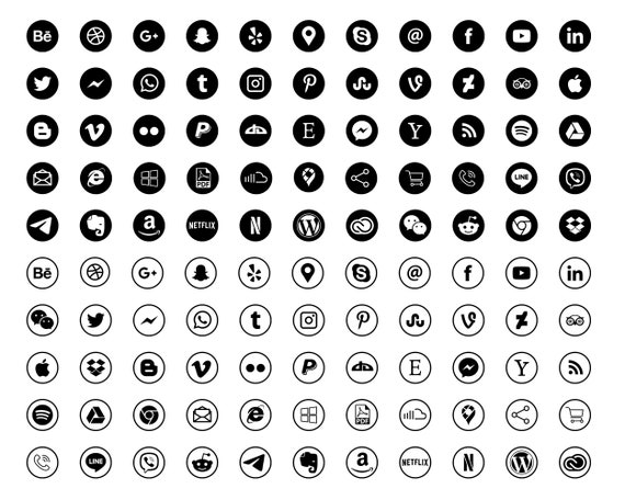 800 以上のソーシャル メディア アイコンPNGEPSSVGAiウェブサイト アイコンブログ アイコン白黒の円形アイコンソーシャル商用利用 - Etsy 日本。