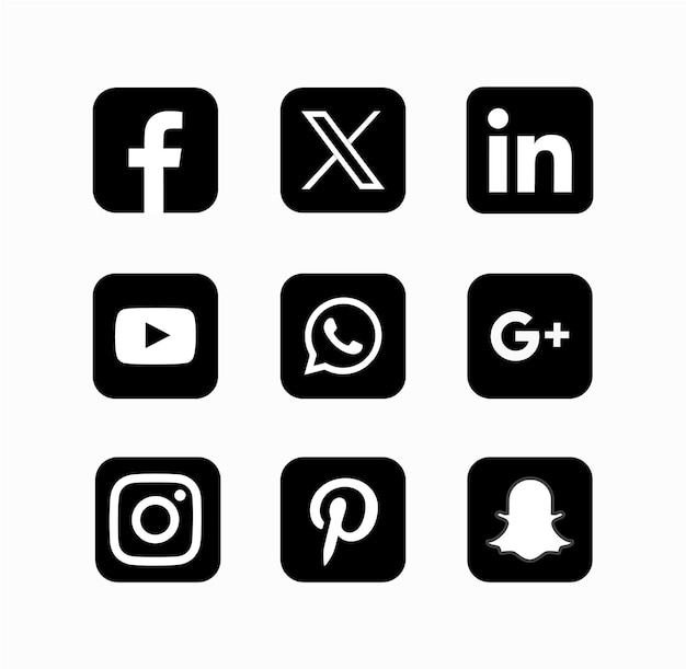 Webサービスのソーシャルメディア用ベクター画像の黒いアイコン」のベクター画像素材 ロイヤリティフリー2357195087Shutterstock。