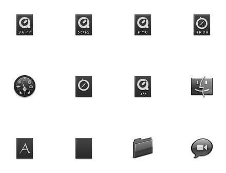 フリー素材ブラックを基調にしたクールなメディアアイコンセット。ビデオや音楽など26種類。
