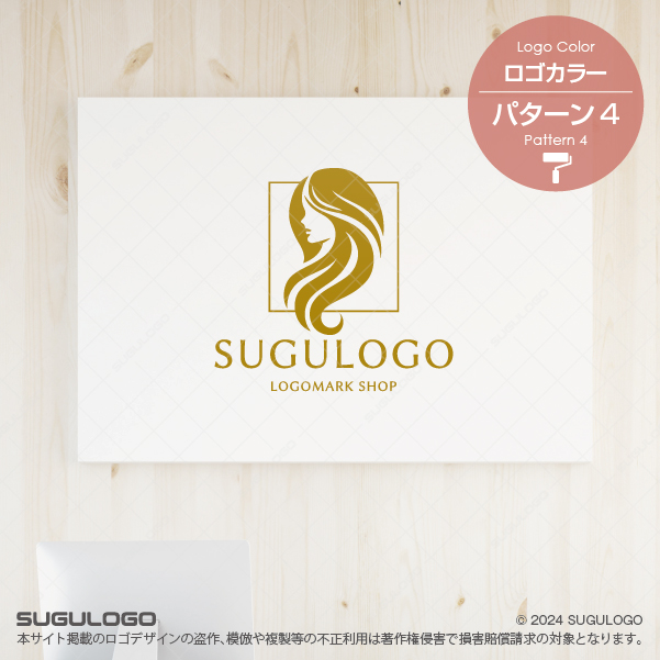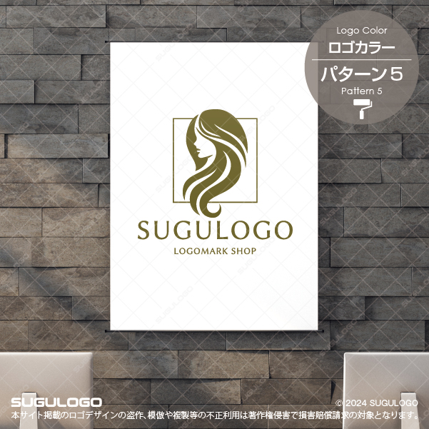 髪を巻いた女性の横顔のロゴデザインロゴ販売のスグロゴ。