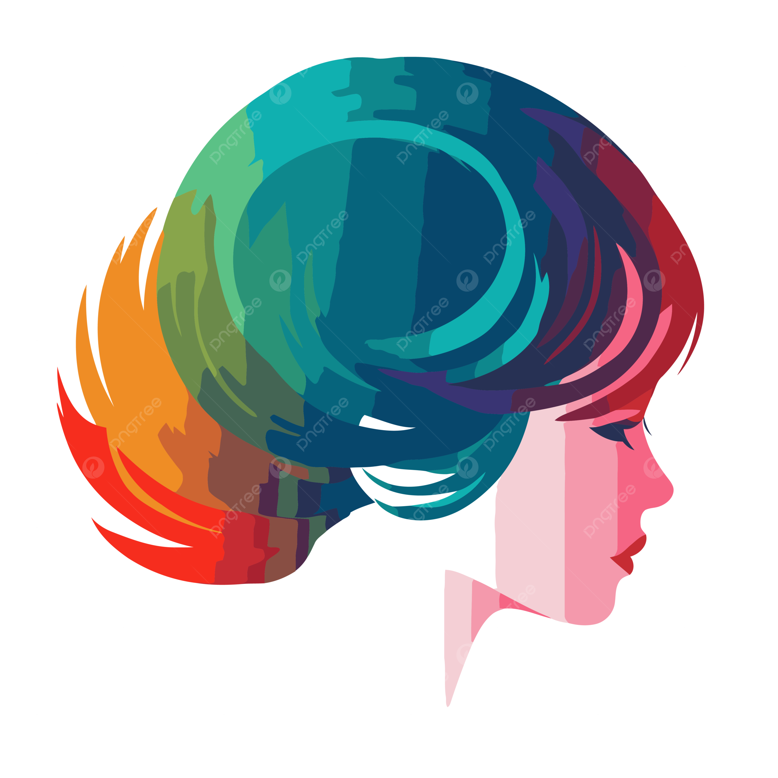 女性の横顔のカラフルな髪のロゴ ベクターイラスト画像とPNGフリー素材透過の無料ダウンロード - Pngtree。