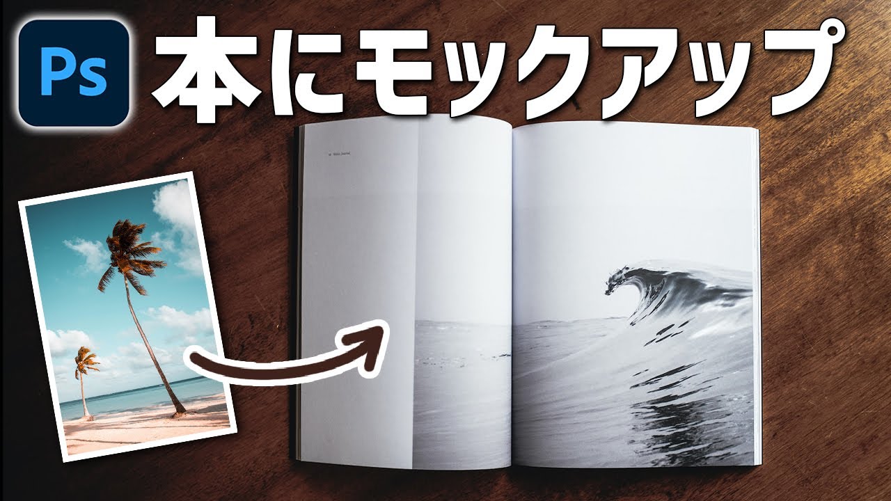 Photoshopで開いた本にモックアップする方法 写真加工。