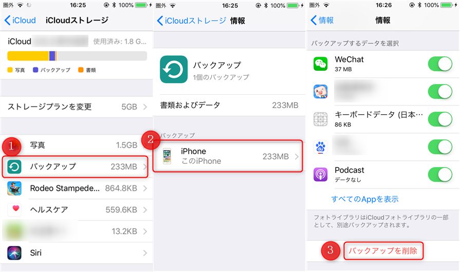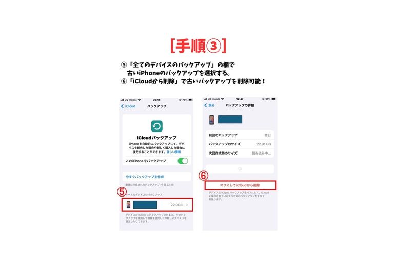 iPhone パソコンでiCloudバックアップを削除する方法。