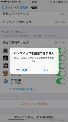 iPhone iCloudバックアップの削除が出来ない場合の対処方法SBAPP。