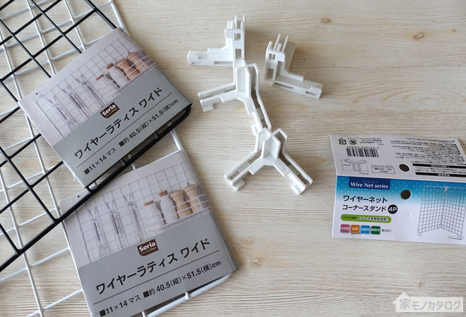 100均のワイヤーネット用スタンド商品一覧。ダイソーとセリアで100円。